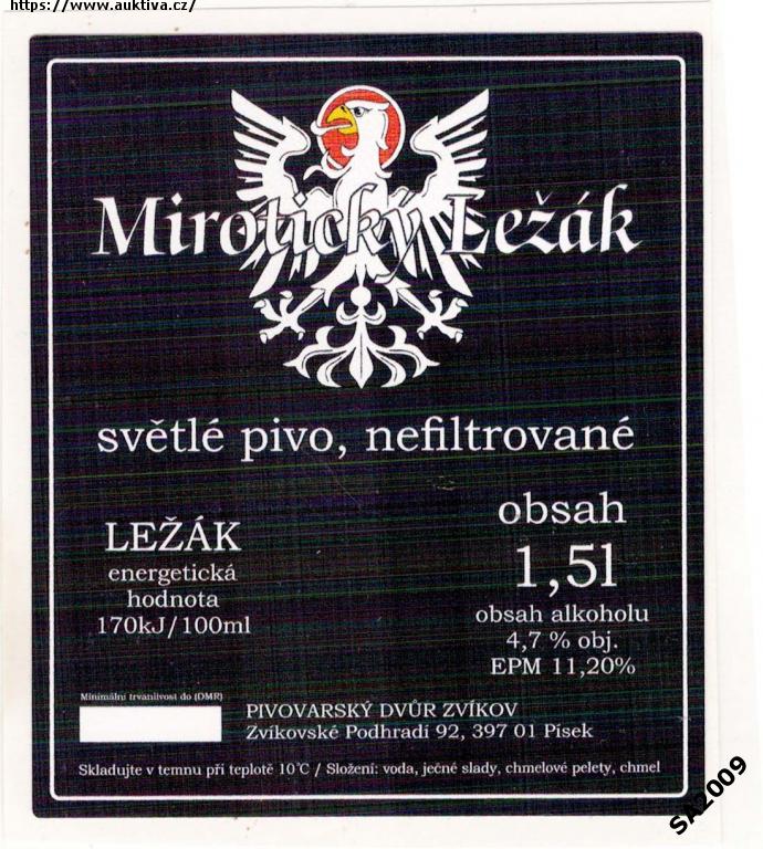 samolepka, podle receptury starého mirotického pivovaru vyrábí minipivovar Zvíkov pro jednoho odběratele v Miroticích